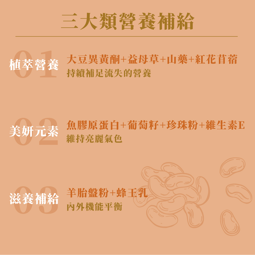 - 蜂王乳 + 紅花苜蓿 + 山藥|內在均衡調理